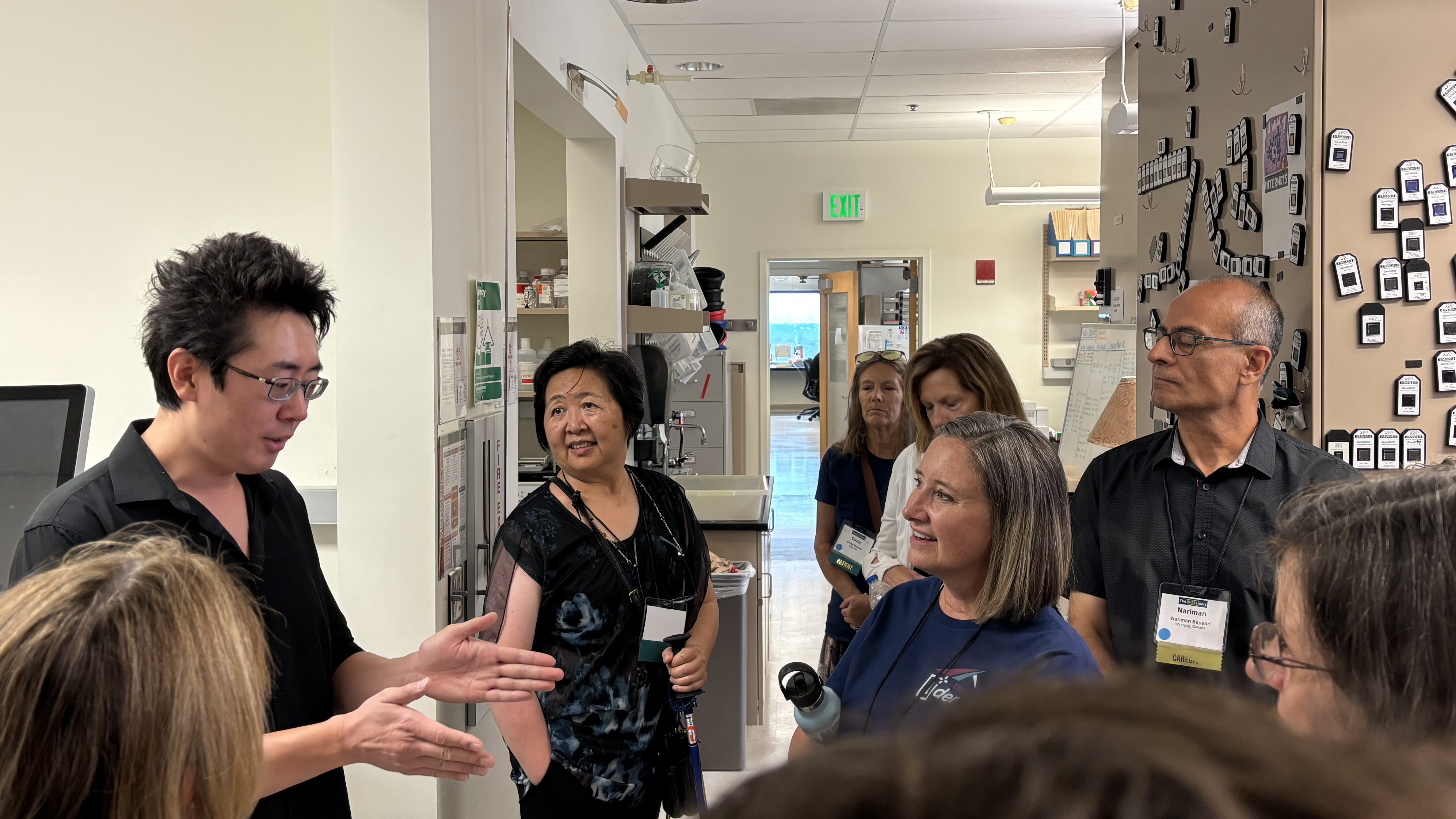 The location of the summit was chosen because there at the University of Colorado Hospital is the most known and educated doctor who treats ROS1, and he was set to be our keynote speaker. Day two of the summit we walked to the University for a tour of their facility and labs. The tour started and it wasn’t long at all before I realized..these are the smart people! So many days we had been praying for the smart people. We continued to thank the Lord for people we would never see or meet that work every day to research and develop ways to attack the disease in my body. And now…I see them, and I meet them – wow!